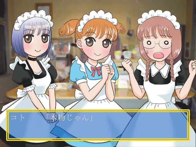 ↓無料完全版のDLは下記の絵をクリックしてね ! ![]() このお店は秋葉原に実在します!? 秋葉原の片隅に一軒のお店があります。 昼はふつーのきっさ店。 夜はふつーの居酒屋さん。 ただちょっとBGMがアニソン!?だったり、 店員さんの制服がメイド服だったり!? 店内は今日もアニメや漫画やゲーム好きなお客様でいっぱい。 あなたも遊びに来てみませんか? 「いらっしゃいませー☆お客様、何名様でしょうか?」 〜あらすじ〜 あなたはある日ひよこ家というCafeをみつけました。 そこはかわいいメイドさんの制服の店員さんのいるお店。 このゲームでは、あなたはお客様となって、ドキドキ楽しいひよこ家を体験してみましょう。
