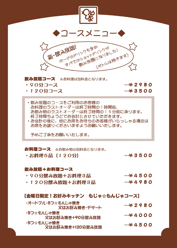 ドリンクメニュー (ランチタイム&居酒屋タイム共通)